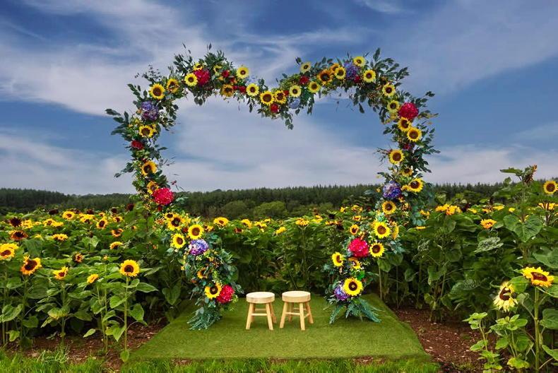 Heart-shaped sunflower arch, one of the many photo opportunities on the farm. \ Joe’s Farm Crisps