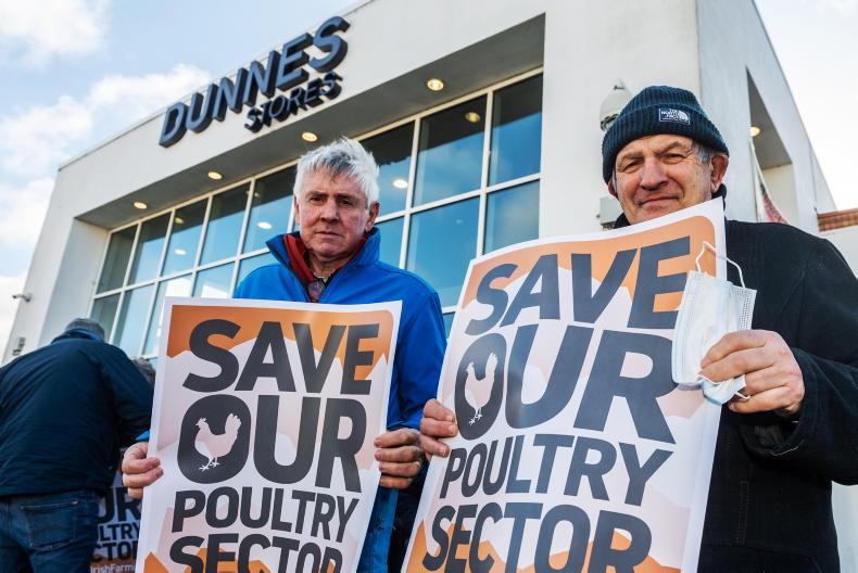The IFA held talks with Dunnes Stores following protests in Cork and Monaghan. The aim was to highlight the failure of the retail sector to give price increases to suppliers and to address cost increases at farm level. The protest was led by IFA pigs chair Roy Gallie, IFA president Tim Cullinan and IFA poultry chair Nigel Sweetnam. \ Andy Gibson.