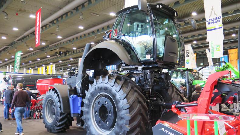 German contractors often have additional work in restoring historic war areas. John Deere dealer Rebo joined with Rheinmetall Waffe to show this military specification John Deere 6R tractor with a price tag of in excess of €300,000. The tractor has shielding is designed to meet level 2 of NATO’s STANAG standards, protecting the occupant from bullets and explosive fragments.