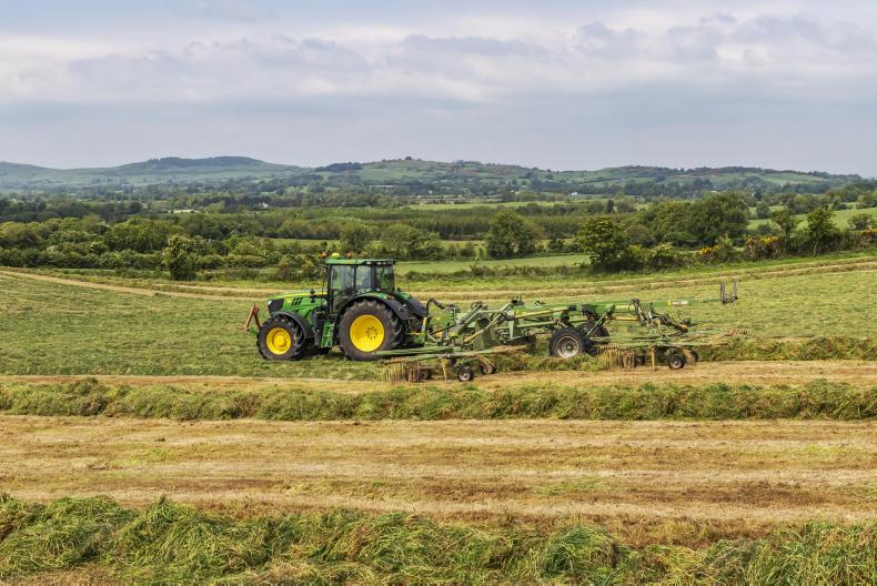 Having run the larger rake for two full seasons, Stephen reckons it has many benefits, one being its ability to keep further ahead of the harvester now than before, raking 25 acres an hour in the right fields. Raking a larger quantity of grass at a time means he can afford to travel slower, generally 8-10km/h, he said. Before he was operating the old rake quicker to keep ahead. Now the larger rake is raking at its ease and, having had no maintenance issues so far, he believes this is the key to maintaining a rake.