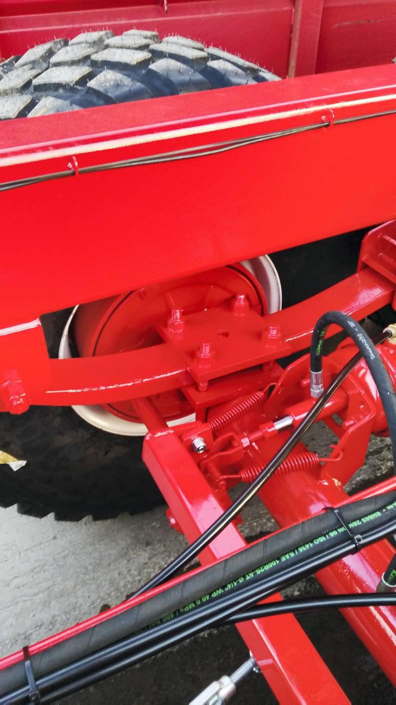 The increased popularity of low ground pressure (LGP) tyres fuelled the need to alter the suspension as increased flex in the tyres sidewall coupled with softer springs reduced stability on the larger trailers. The heavy duty suspension eliminates the flex in the spring, therefore increasing stability. The design is also capable of handling greater weights than the traditional system. Smyth explained this system is a proper agricultural suspension, not something taken from a truck, and is unique to them.