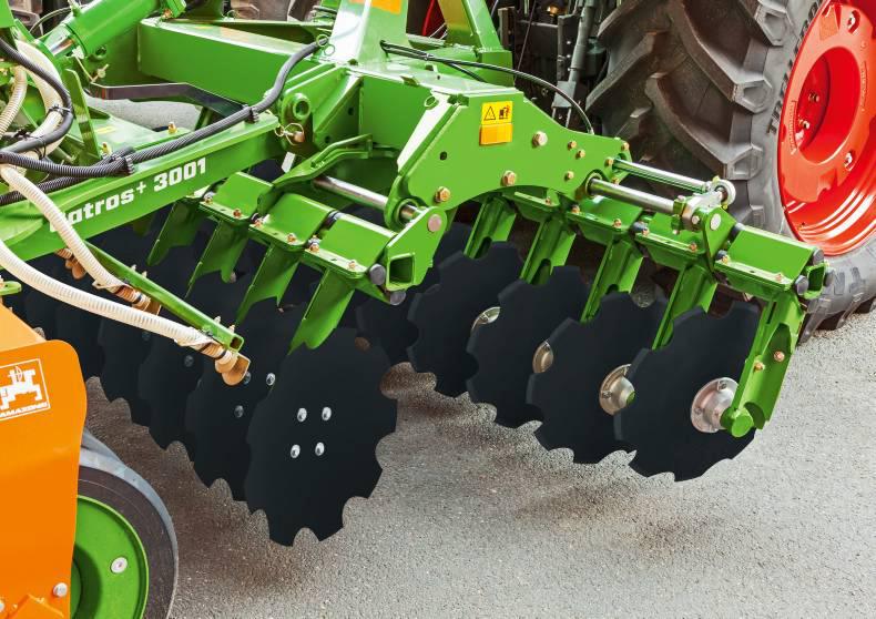 The TwinTeC+ double disc coulter features a stepless hydraulic adjustment of the coulter pressure, which includes a wide setting range of 15kg to 100kg of force.