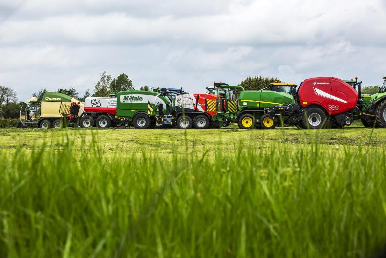 This is the first and currently only continuous baling and wrapping machine available on the market and has caused quite a stir during its first year in Ireland. The pickup of the FastBale is 2.2 metres wide and has five rows of tines running on twin-cam tracks. The intake rotor on this machine is 800mm and there are 25 knives in a full set, with the capability to run 6-12-13-25 at any time. Thirteen were engaged for the test. The FastBale works on a twin-chamber system with a split of approximately two-thirds/one-third. In the pre-chamber there are 14 rollers (three of which are shared with the main chamber, where there are 17 rollers) giving a bale diameter of 1.26 metres. These roller are run on a double set of 50mm bearings on the drive side and a single on the non-drive side. In the case of a blockage, there is a dropped floor system that can release pressure from both chambers. The FastBale has a fully automatic oiling and greasing system which has to be a good thing on a machine that has a lots of moving parts. Density is controlled hydraulically, as there are no latches on the back door. The FastBale has the capacity to carry three rolls (one in use, two spare) of net and up to eight rolls of wrap, two in use and six in storage. On the day of the test, the non-stop baling was an interesting sight.