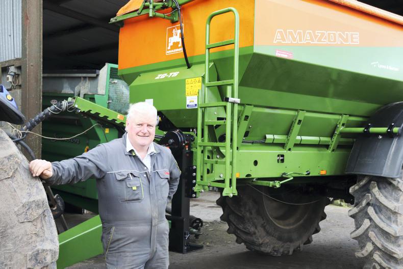 Jerry O’Keeffe operates an Amazone ZG-TS 8200 trailed bulk spreader, mainly spreading fertiliser on cereals and grassland in Mullingar Co Westmeath. The 8t Amazone spreader is in its fourth season.