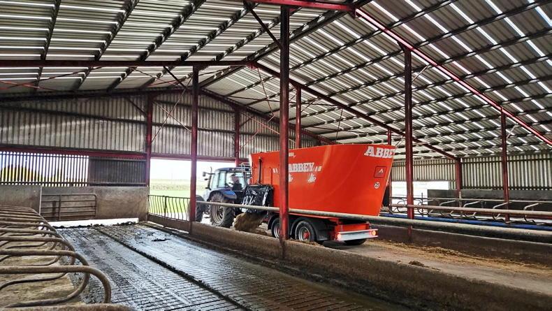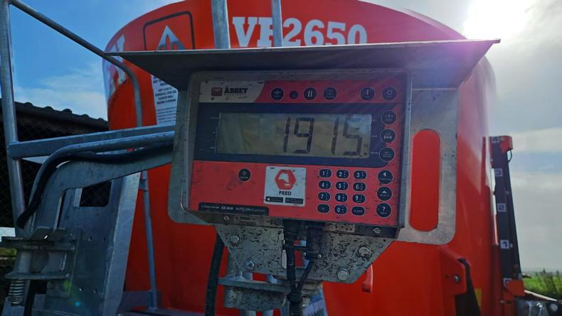 “The feeder tends to be on the go all year round; feeding the beef cattle, calves or buffer feeding the cows. At the moment, I’m mixing about eight loads daily. I could get away with one load less by filling the feeder more but I don’t tend to for two reasons,” John explained.