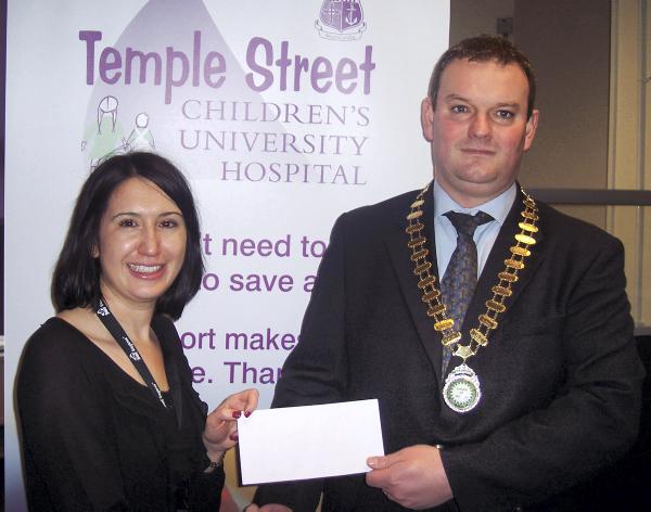 To mark the close of the FTMTA Centenary, the executive council of the association decided to make a donation to a deserving national charity. Pictured is the FTMTA president Conor Bree presenting a cheque to Anne Cooney, corporate partnerships manager with Temple Street Children's University Hospital.