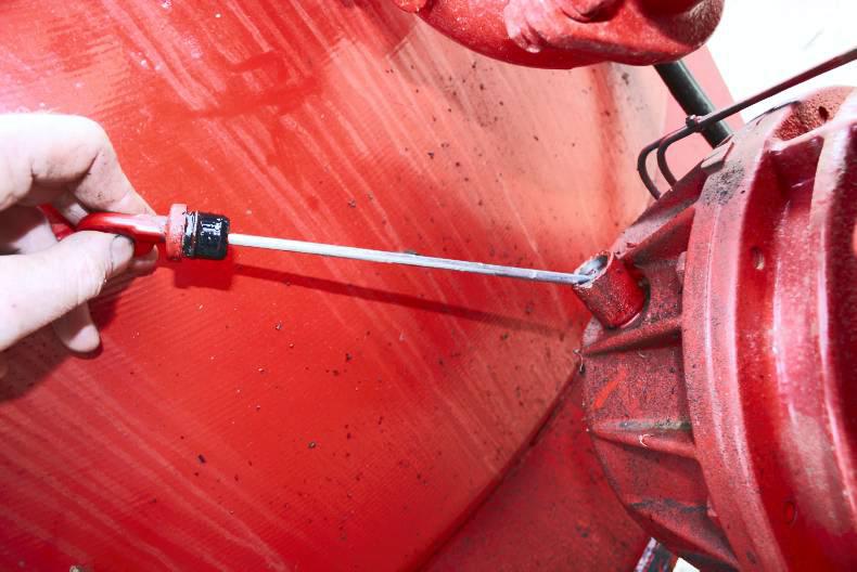 At the rear of the pump is the reservoir for the pump’s lube oil, usually quite a light oil or milking machine oil. Again check the manual to be sure. Most manufacturers place a sticker indicating the rate and oil type close to the pump.
