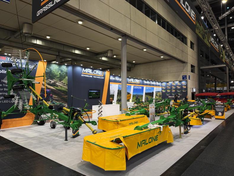 Malone Farm Machinery once again put on an impressive display at Agritechnica, showcasing the best of what its grass line has to offer. The Ballyglass, Co Mayo manufacturer exhibited a broad range of side-mounted plain and conditioner mowers, alongside its front-mounted plain and conditioner models. The well-established range of Malone tedders were also on display, including the Tedd-Air 1128T eight-rotor trailed model and Tedd-Air 840, six-rotor mounted model.