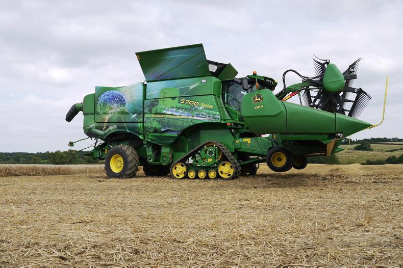 On the machine we saw operating was a 735D draper header. These will be available in conjunction with the traditional auger-type 600R and 600X headers we are used to seeing. They are not common in Ireland but something John Deere wants to push.