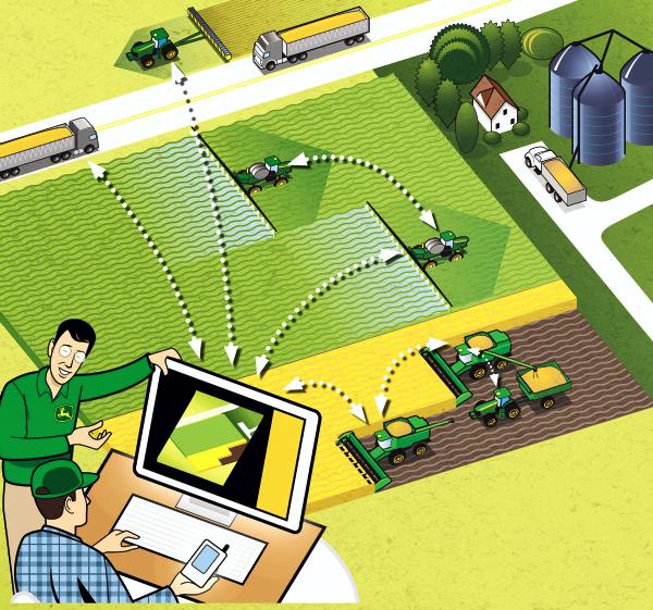 The operations centre on www.MyJohnDeere.com allows the farmer to manage farming operations and their fleet of machines. You need to have a John Deere GreenStar 2630 display unit fitted. The field analyser tool lets you compare these layers of information.JDLink Ultimate, for John Deere machines, allows the farmer to remotely-control machine functions.JDLink Select can be retro-fitted to non-Deere tractors and machines. John Deere Field Connect identifies field moisture differences.
