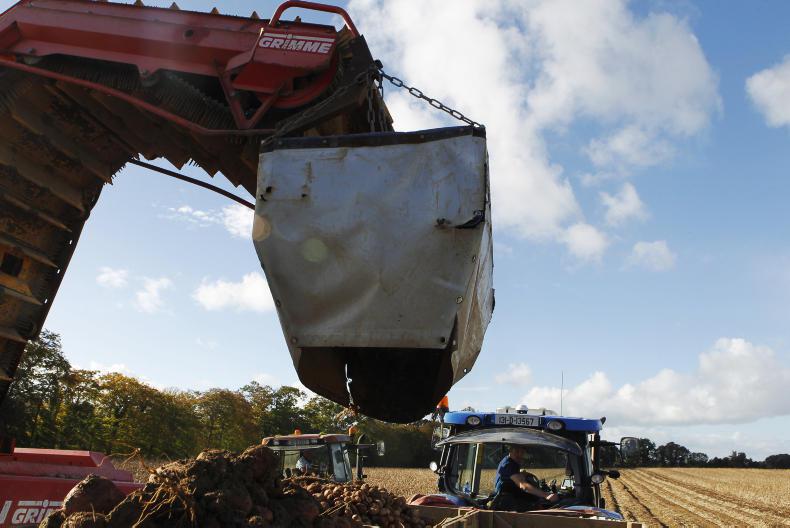 Jamie Doyle of Grimme Ireland was on hand to discuss the main points to watch out for in the harvester which could cause damage at a recent Teagasc/IFA field walk in Balrothery, Co Dublin. While the discussion centred on a Grimme GT 170 trailed harvester, the points discussed will be relevant to any harvester.