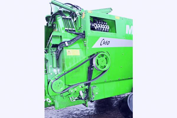 John assured me that the McHale C460 doesn’t require massive power; he recently set one up on a Ford 5000. The machine can be started by a low horsepower tractor as the rotor is engaged after the flywheel is up and running.