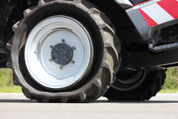 Mitas testing of the PneuTrac concept has so far been mainly on this smaller 18in wheel rim. The test results show that the PneuTrac footprint is 53% larger compared with the standard tyre and it provides a higher tractive force.
