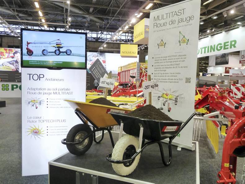 Om the Pottinger stand at Sima, the 207 kg of dirt per hectare reduced by the Mutitast wheel are showed in the wheel barrows