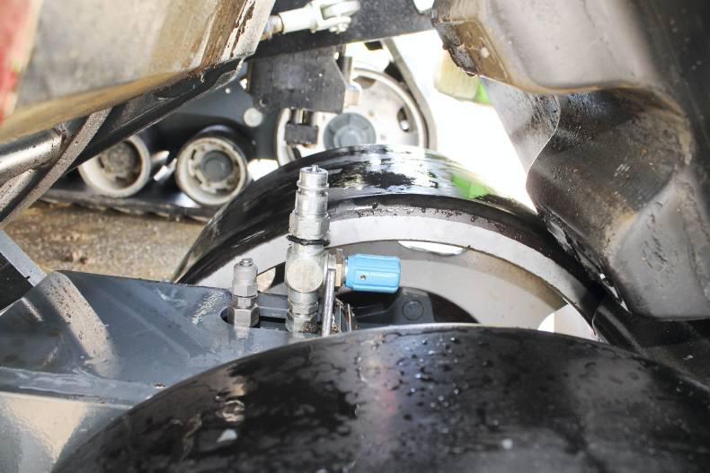 From a service perspective, there are four grease nipples at each track unit. The tracks are hydraulically tensioned to approximately 100 bar and the manufacturer recommends this is checked annually. So a little extra greasing, but nothing too serious.