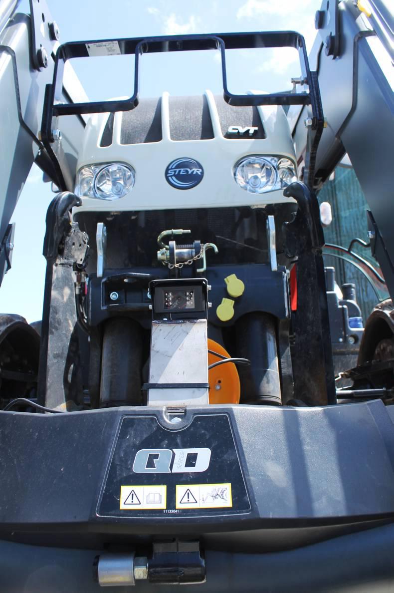 Neil fitted a Quicke Q76 loader on the Steyr for its intended task as an in-field materials handler. According to Quicke, the Q76 will lift over 2.5t, 800mm out from the implement carriage pivot pin at ground level. Maximum lift height is quoted at 4.2m under level implement.