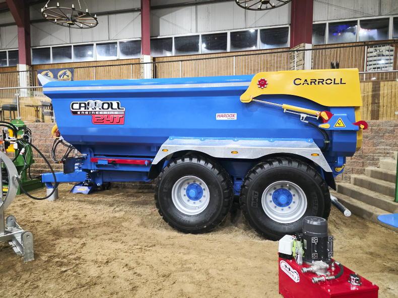 Carroll Engineering, based outside Bailieborough, Co Cavan showcased a taster of its vast range of machines and implements, including log splitters, bale splitters, land leveller and transport boxes. However, one product attracting plenty of attention was its 24t tandem axle dump trailer. Not afraid to take on the challenge of manufacturing bespoke solutions, beyond its day-to-day range, the high-specification trailer was built with strength, stability and longevity in mind.