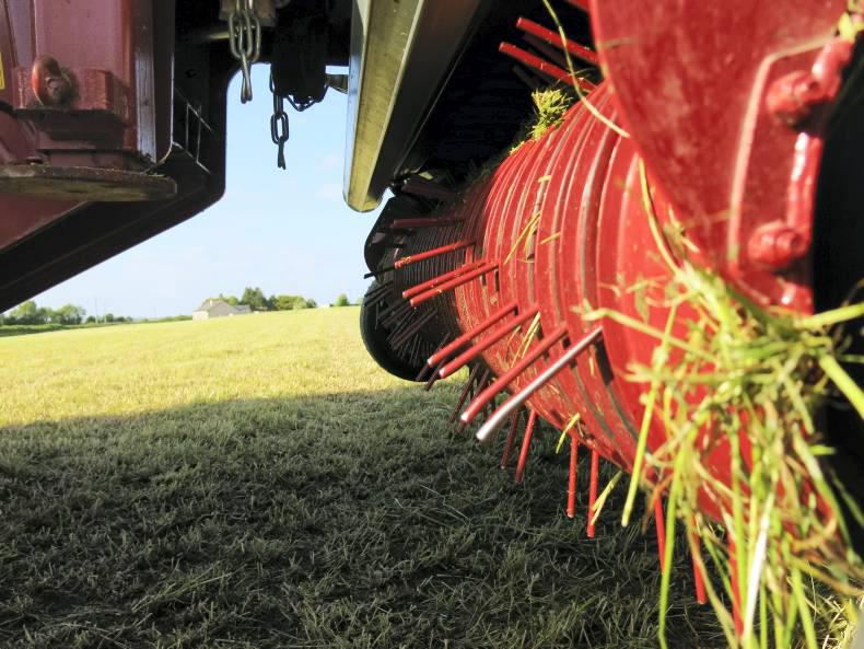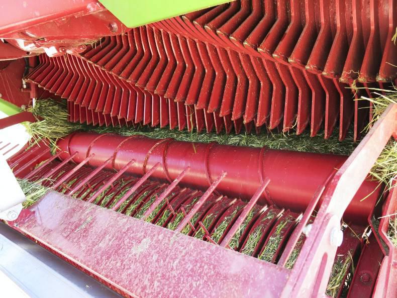 In the field, you could drive as fast as you felt comfortable with. The 30ft swath did not seem to trouble the machine, and the power demand varied with the volume in the swath as it did for all of the machines. The camless pickup did not seem to be at any disadvantage in cleaning the swath off the ground. In a lighter, flakier crop it might be an issue. The CFS roller seemed to work well, delivering the crop over the full working width of the rotor. Engine load on the tractor was very even. While we didn’t measure fuel consumption, in theory there has to be fuel savings with the CFS system. And knives should stay sharper for longer.