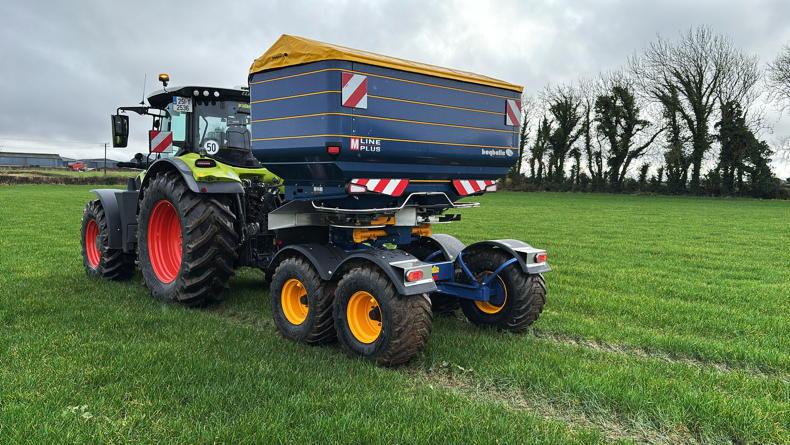 “The Meredith bogie is seriously well designed. Even with 4-4.5t of fertiliser in the spreader, the bogie is extremely steady both on the road and on the land. In our eyes, the bogie is very safe, we run it on a Claas Arion 620, and even with travelling at 50km/h loaded on the road, its steady.