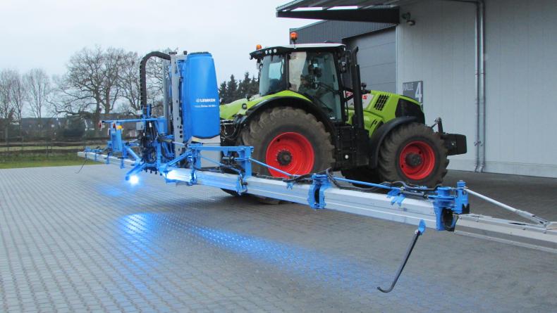 The Lemken blue LED lights illuminate the spray distribution at night on the new Sirius and Vega sprayers.
