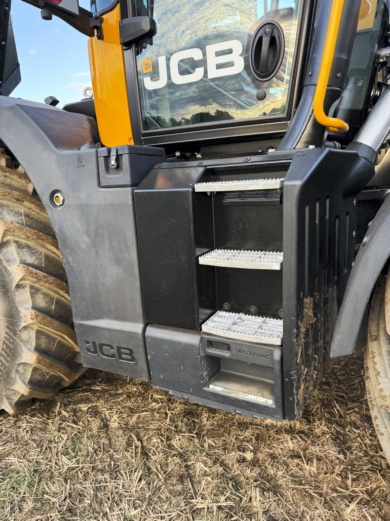 Twin Steer offers individual control of the front and rear axles so that the tractor can dog-walk to avoid the front and rear axle travelling on the one pass or allows one of the axles to be corrected on a side slope in order to keep an implement on track. JCB claims this will remove the need for side shift mechanisms on specialised implements.