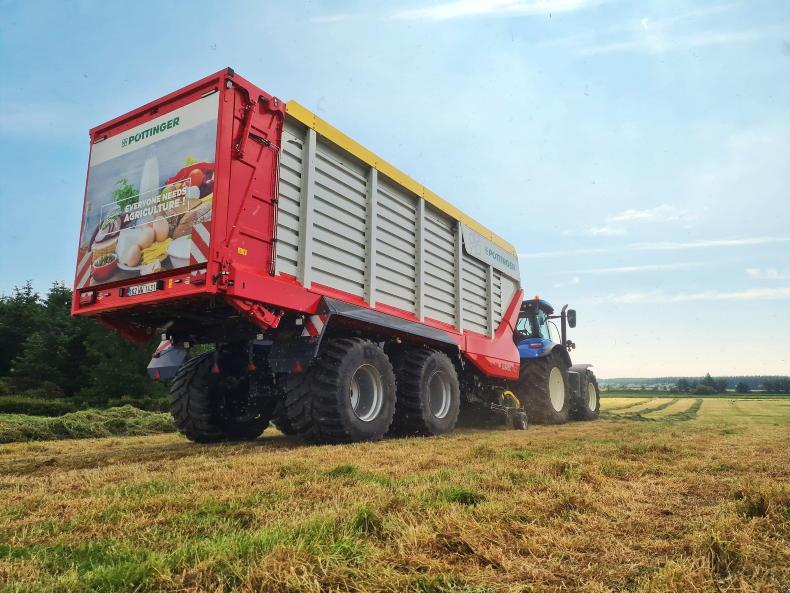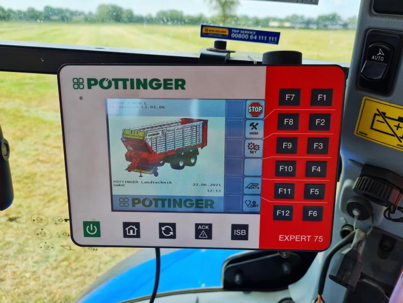 Although not currently a legal requirement in Ireland, Pöttinger has a newly designed load retention system to cover the load for transport on the road. The cover consists of two folding frame sections with a hydraulic chain drive mounted at the centre of the shaft.