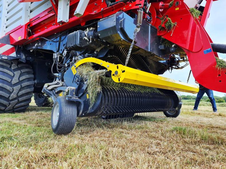 Fixed jockey wheels come as standard, while hydraulically folding ones come as an optional extra. Although not something so common in Ireland, the pickup can be removed to use the machine for other tasks. This reduces the weight of the Jumbo by 520kg. Pöttinger says it can be removed in 15 to 20 minutes.