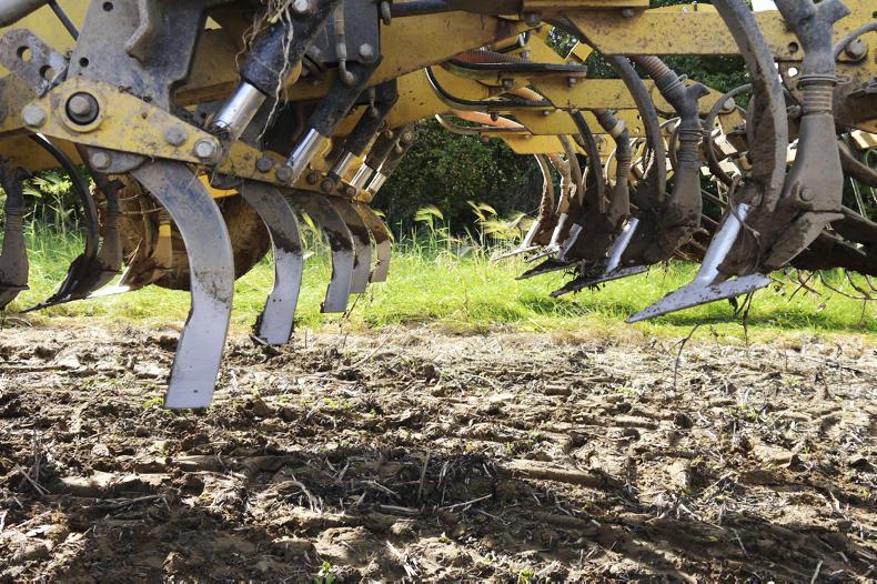 The running costs of the system are interesting. “The tractor is using 3-5 litres depending on the ground, wearing parts are €3/acre to €5/acre and I charge €35 plus VAT per acre to do the work. The saving is the fact that you’re not ploughing or rolling before the drill.”