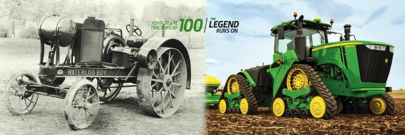 The John Deere Forum in Mannheim is featuring a display of vintage and classic tractors that have strongly influenced the company’s history, including an original Waterloo Boy, while the Forum’s shop is offering a variety of fan merchandise, such as a special edition 9RX tractor model, caps, shirts and mugs. Tractors ordered this year will also carry a 100 years anniversary badge, and dealers will have a range of special offers at favourable prices.
