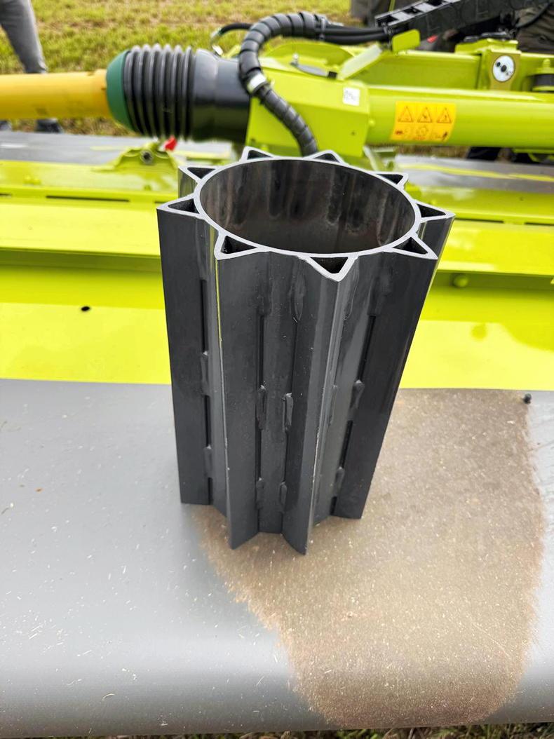 Claas is renewing its widest conditioner mower, the Disco 1100 C/RC Business. The telescopic arms of the mowers, which are up to 10.70m wide, have been reinforced and also fitted with additional spring-loaded sliding elements. Claas says this ensures a constant contact pressure at all times, which has a positive effect on driving comfort.