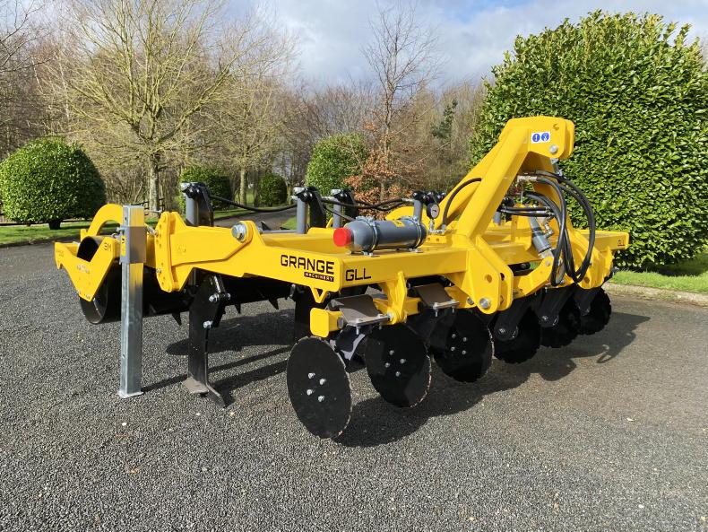 The Grange display at the Kelly’s of Borris stand will also include a four-metre-wide close-coupled toolbar machine. This unit comes with eight low disturbance loosing tines, each spaced at 0.5 metres.