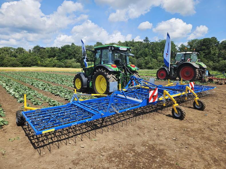 Dutch manufacturer Treffler demonstrated its 8m precision tine harrow in the mechanical weed control demonstration as part of the recent Crops and Cover Crop Cultivations event.