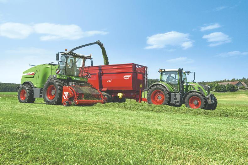 Notable new products being launched in Ireland are the Claas Torion articulated loader which will be working on the silage pit, the 911hp New Holland Forage Cruiser forage harvester, a whole new grass equipment range from Massey Ferguson and Fendt, the new McHale twin-rotor rake and Poettinger Impress round baler.