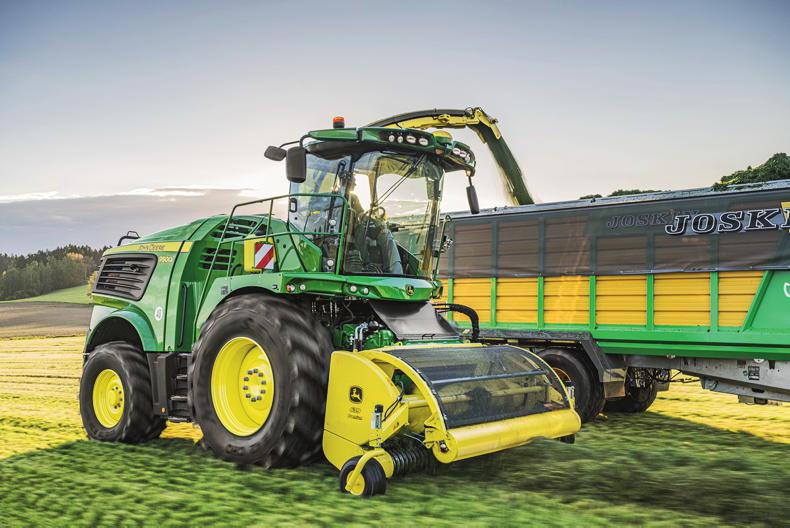 Aside from HarvestLab 3000, other options include AutoTrac automatic steering and MachineSync speed matching which automatically matches trailer position and speed with the forager.