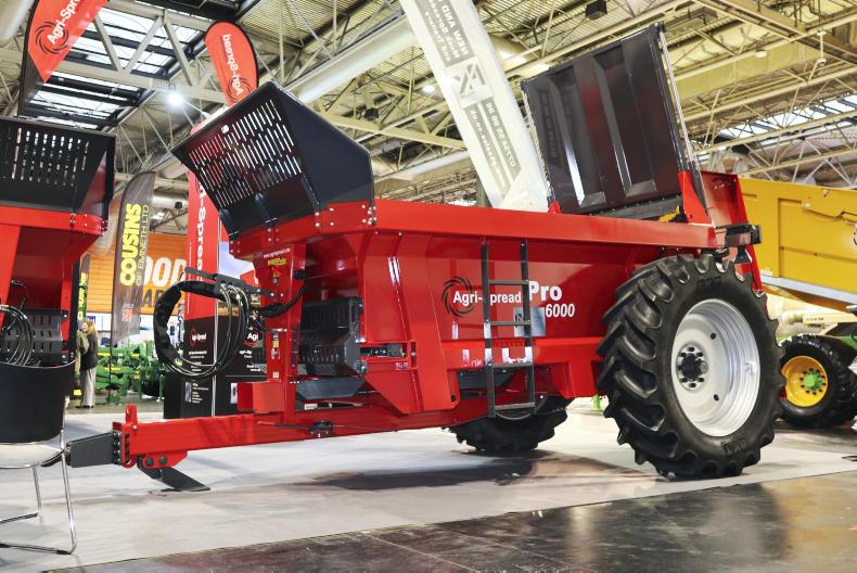 Mayo-based engineering firm Agri-Spread unveiled its new series of vertical beater rear discharge spreaders at the NEC last week. They are designed to spread a range of manure types, with models available from 6t to 12t.