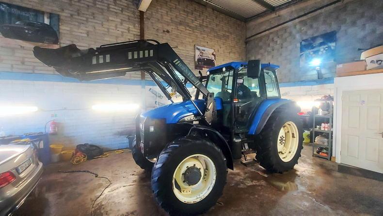 This clean New Holland TM115 range command tractor with a Rossmore FL80 front-end loader sold for €23,500 plus commission.