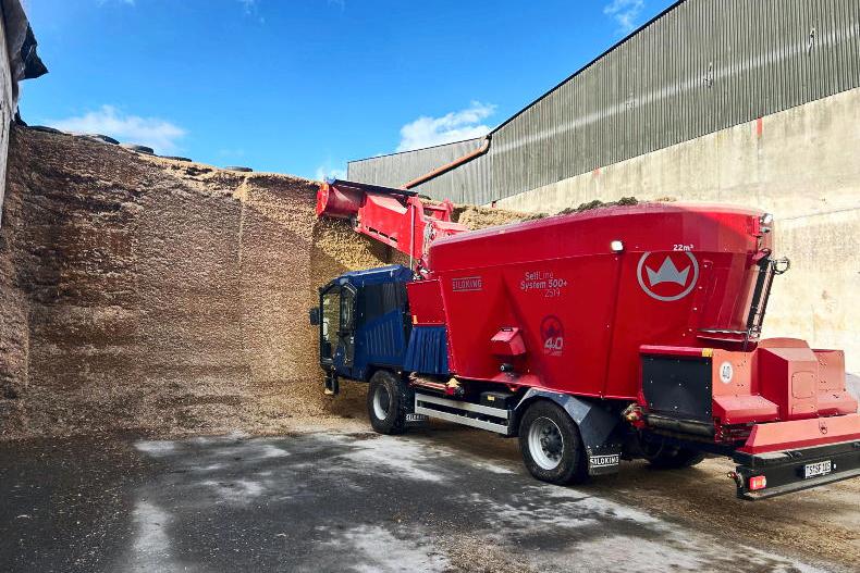 “Our current system involves the tractor and diet feeder parked stationary, with the mixer running. We use a telehandler to run around to the different silos etc, and bring the feed to the mixer. With the self-propelled machine, the feeder goes to the silos, and the yard is being kept very clean. It also offers a much better system for taking silage from the silos, leaving behind a very clean pit face in comparison to a shear grab,” Ryan added.