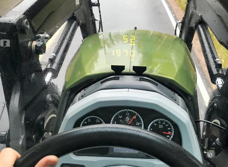 The head up display will show data such as engine rpm and speed on the windscreen in front of the operator.