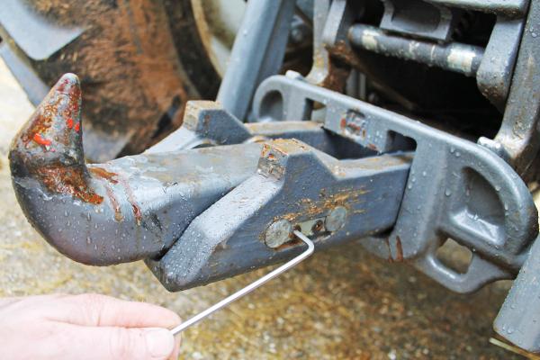 Next, we hooked up a trailer to move a load of hay. Operating the hitch release is done hydraulically by a switch.
