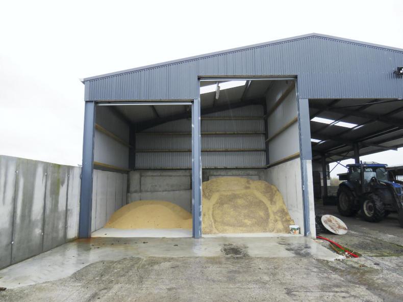 A general purpose shed was built to hold machinery, straw and hay. In total, this shed is 24.3m (80ft) long and 15.2m (50ft) wide with a 3m (10ft) overhang. At the front of this general purpose shed, a bay is used as a double feed store. Each compartment of this store is 6m (20ft) deep by 3.4m (11ft) wide. John Griffen from Four Mile House in Roscommon installed the roller doors and they are opened by the switch of a button. One door is 4.5m (15ft) high and other is 5.2m (17ft). The farmer opted for this system to store his feed rather than a silo, because he felt it was a quicker option when it came to feeding out. He said he can now just drive in with the front bucket of his loader, take a scoop of ration and tip it into the diet feeder. He also says he can purchase a bulk load of feed for €10/t less, because loads can be tipped into the store rather than blown in.