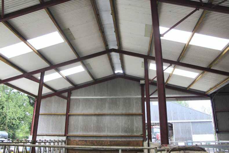 The old hayshed is 60ft long and 20ft wide. The creep area is 15ft wide and has an entrance for ease of cleanout. The slatted area is 14.5ft wide. The shed is 16ft high at the eaves and 22ft at the apex.