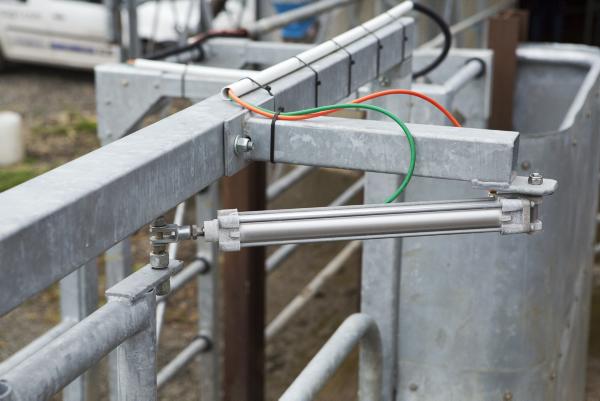 This drafting system features just one gate on the chute. It must be able to identify the cows early enough to allow the gate to move ahead of them. The section of chute leading to the gate must be long enough to control the approach of the cows to the gate. This section is 3m long.