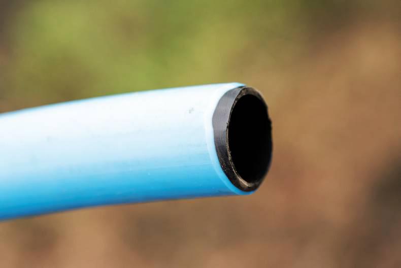 John Hanrahan from Hanrahan Plant specialises in fitting new water systems on farms. He says it is difficult to recommend a pipe size to use on a particular farm but usually goes with all one-inch pipes (32mm OD). “We always feed the trough with a 32mm pipe and it generally is linked from a 40mm main line. The bigger the pipe, the more water you should have coming to a trough,” explains John. He recommends using medium-density polyethylene (MDPE) pipe because it is capable of holding higher water pressure and it meets all the new specifications. To plumb a trough, the first step is always turning off the water. Next, cut the main line using a pipe cutter.
