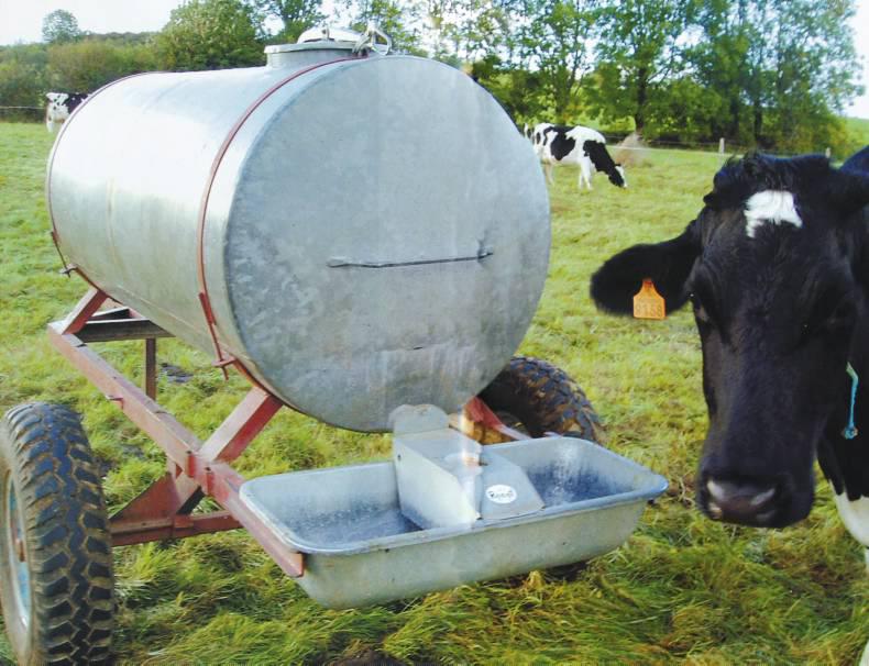 Having a small water trough with a ballcock attached set up on the back of a tanker is an easy way to provide water where there is no fixed source, especially on out-farms.