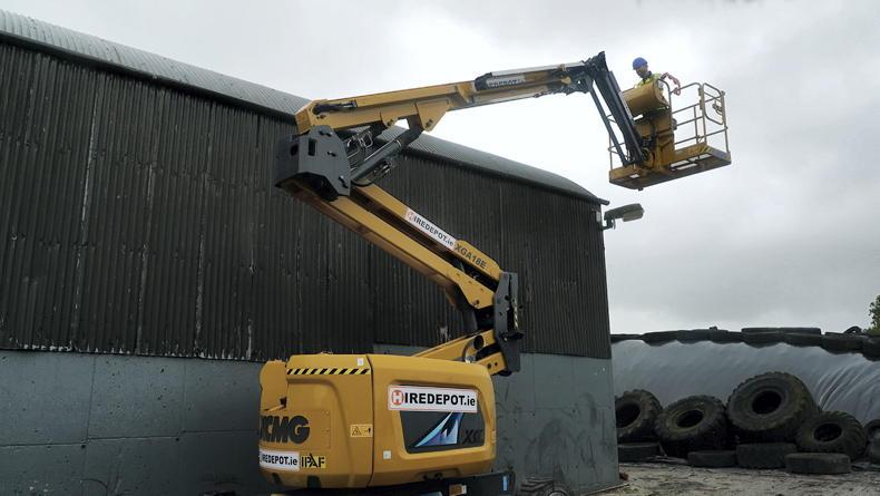 Using the correct equipment is essential. Pallets or buckets on a front loader are not safe for working from heights. A mobile elevating work platform (MEWP), commonly known as a cherry picker, in which the person completing the work has full control of the machine should be used, coupled with an appropriate safety harness and head protection. Be sure that you are competent in using a cherry picker before completing any work from heights.