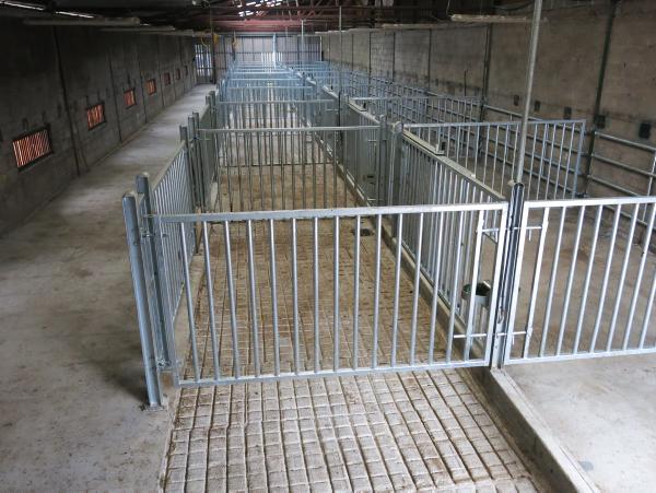 Each pen has two parts – firstly, a feeding/standing area, with a grooved concrete floor, and secondly, a bedded area.