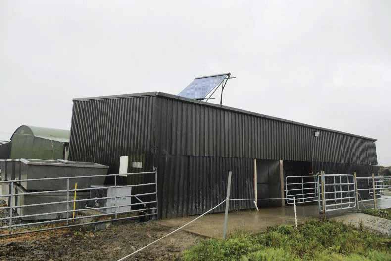 This is the shed into which the new 12-unit Pearson parlour is fitted. On top of the parlour roof, a 40-tube solar panel is in operation.