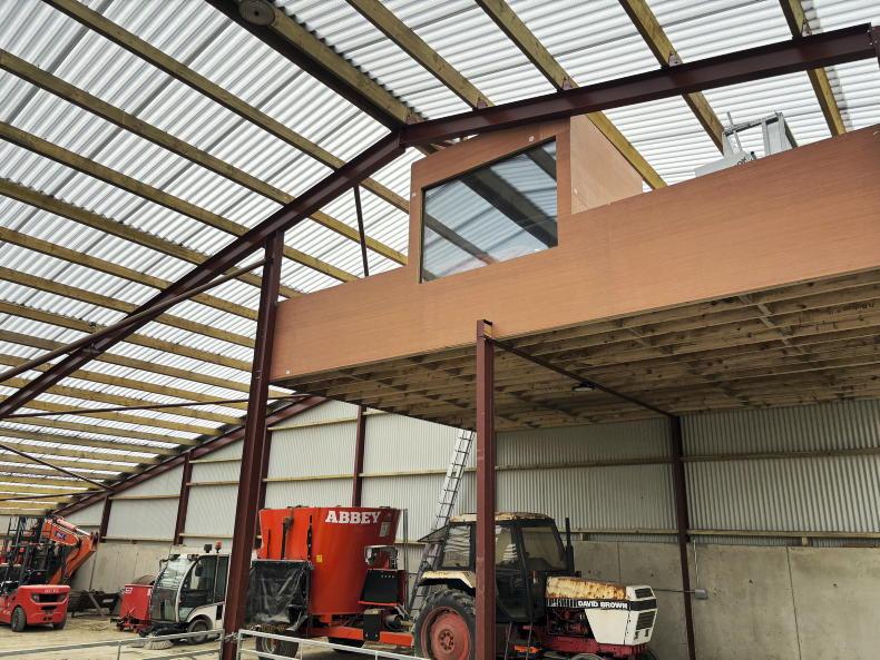 The loft has been kitted out with a shepherds hut, while the David Brown and diet feeder tasked with feeding out ewes accessing underneath it.