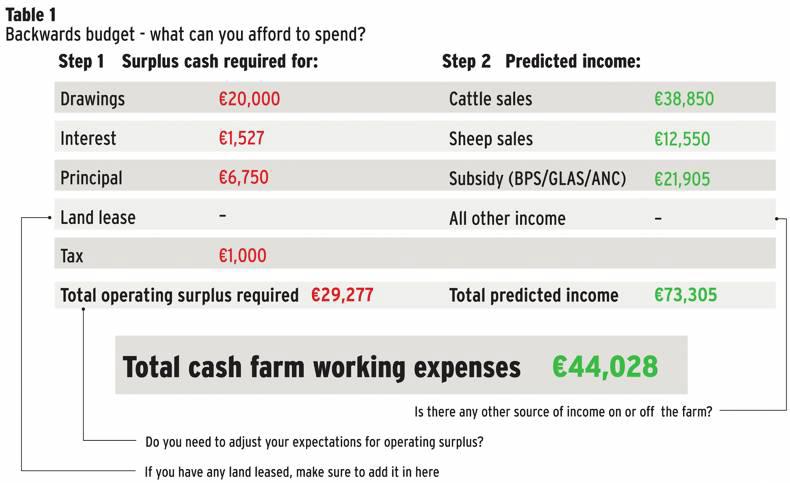 An interesting way to do this is called a backward budget. This is where you first identify what you have to get from the farm. At its simplest, it will be drawings, loan repayments, lease payments and tax.