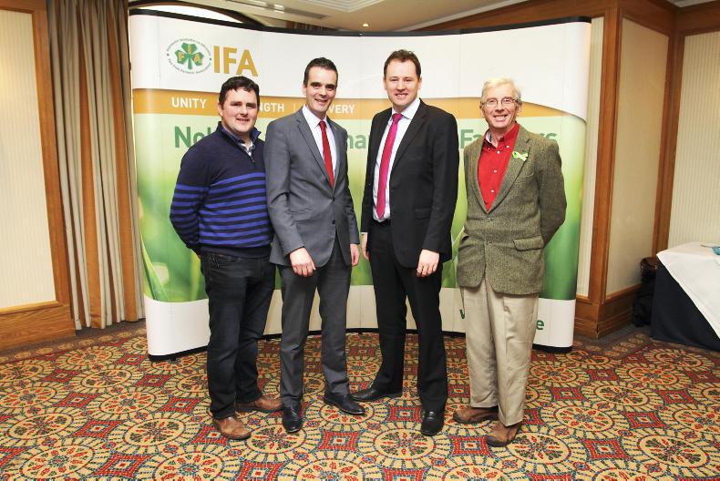 Andrew McShea, Donegal rural development chair; IFA president Joe Healy; Charlie McConalogue, TD; and Michael Chance, Donegal IFA chair.